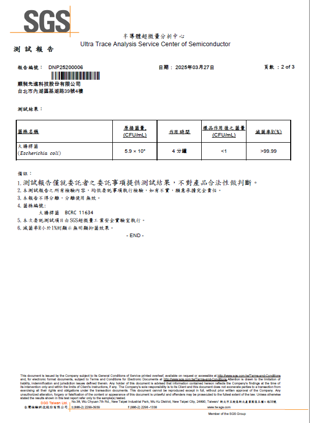 USii UVC 深紫外光智能淨水除菌壺SGS除菌報告_2.4L