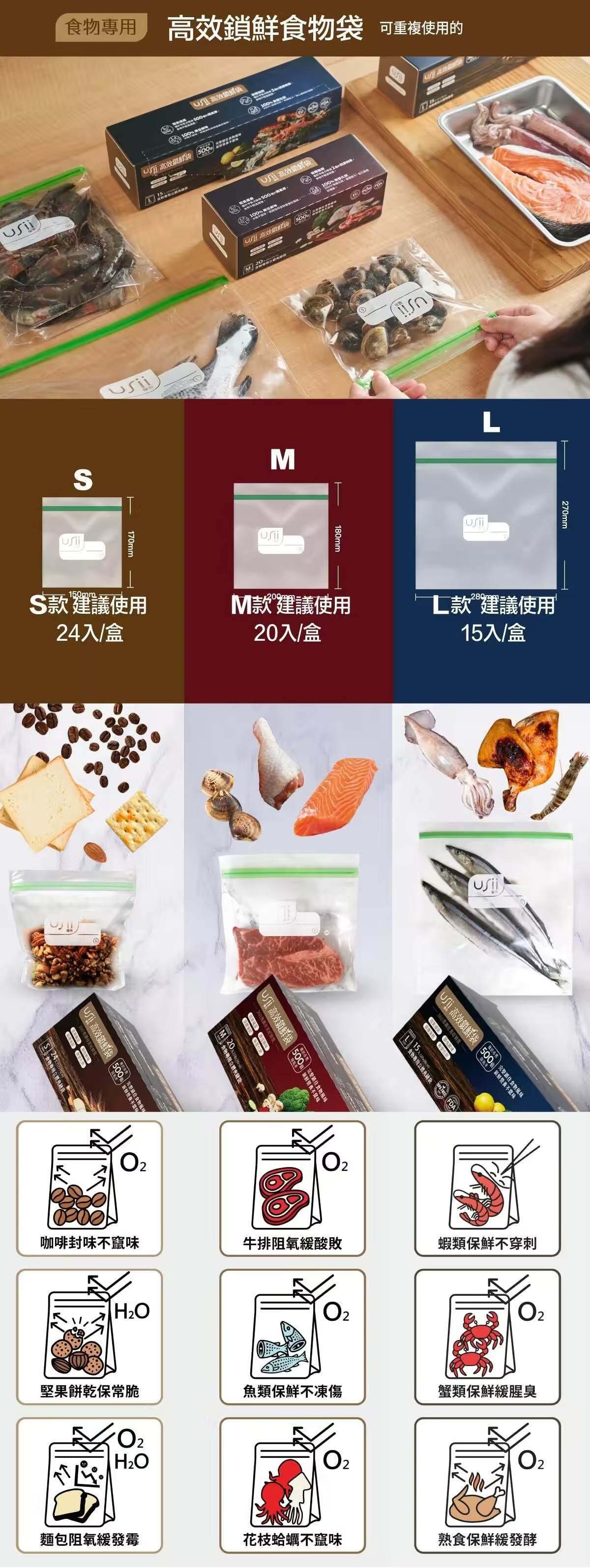 ・ 食物立體夾鏈袋 (S):24入/盒、長15x寬17x深3cm