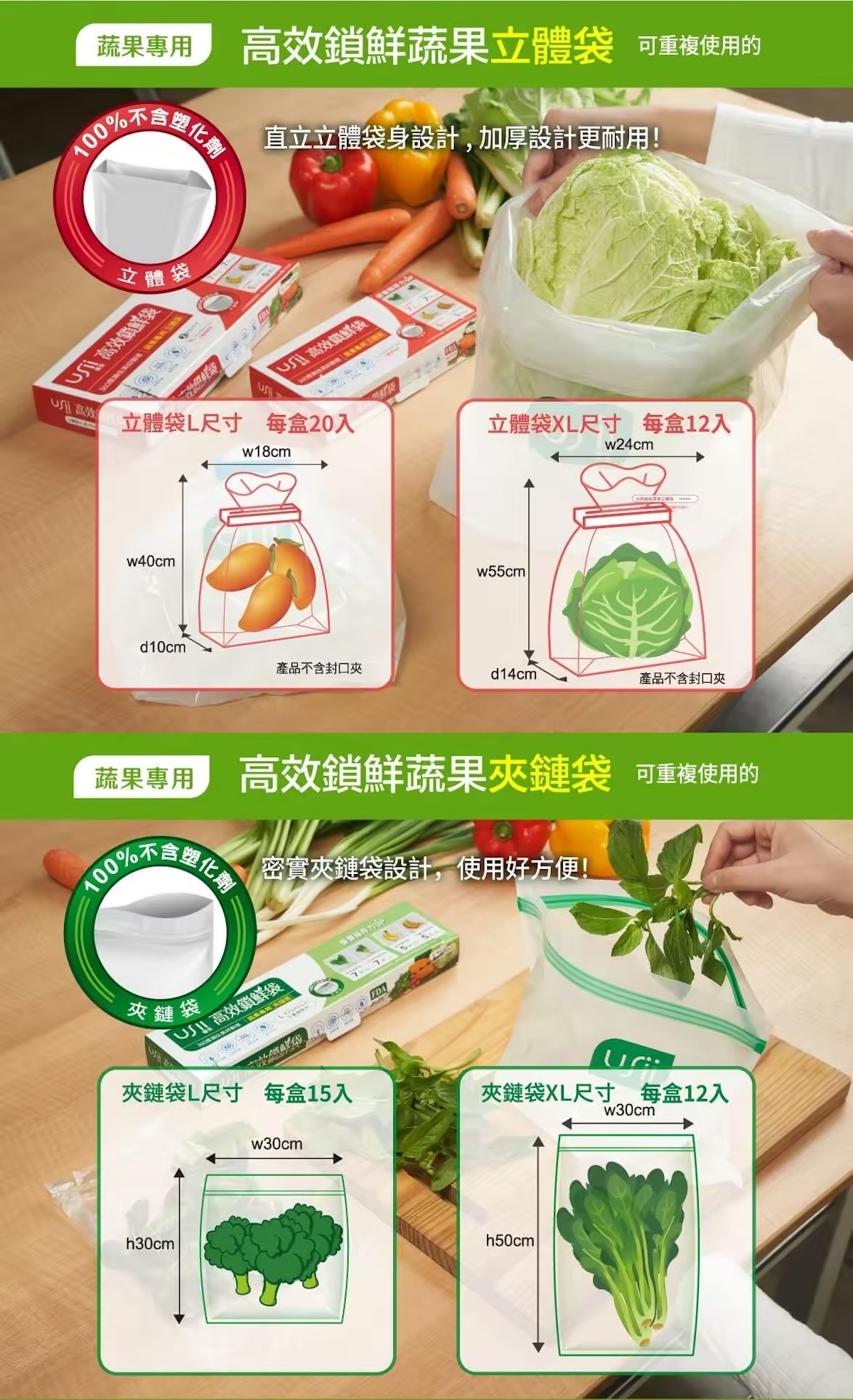 ・ 蔬果立體袋 (XL):12入/盒、長55x寬24x深14cm