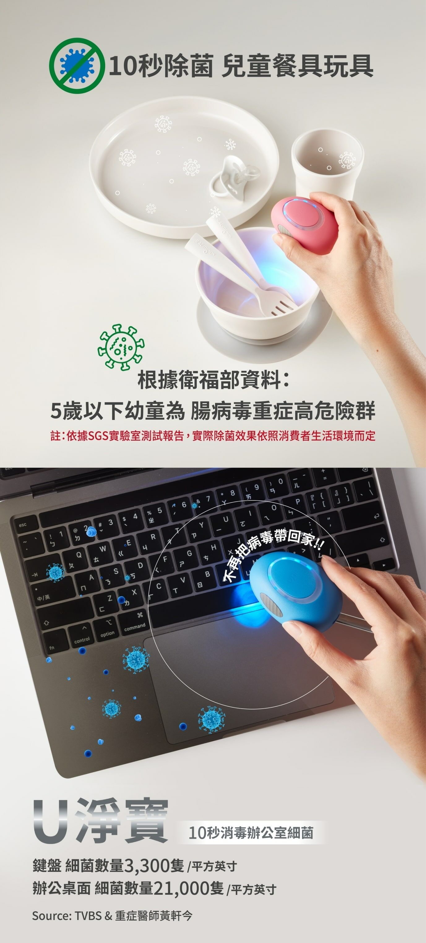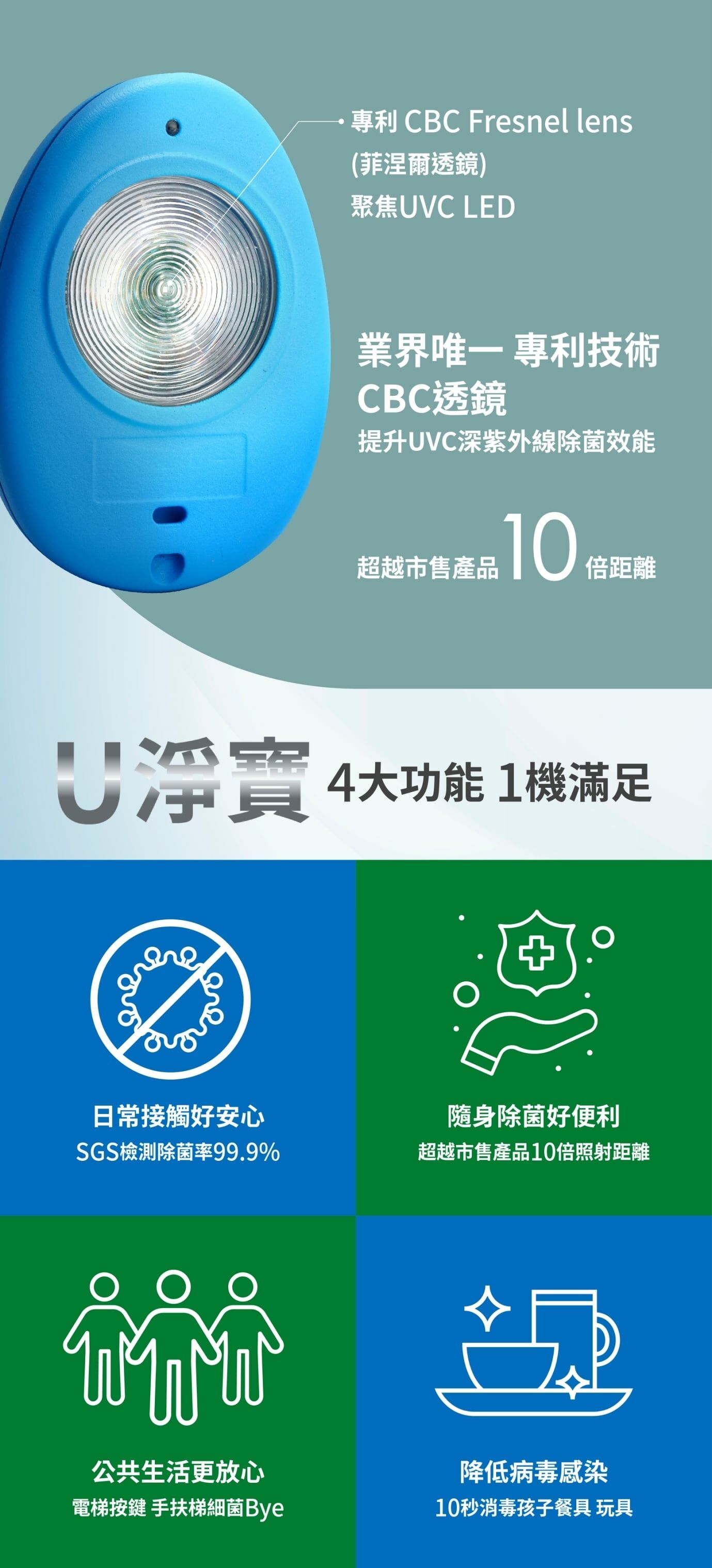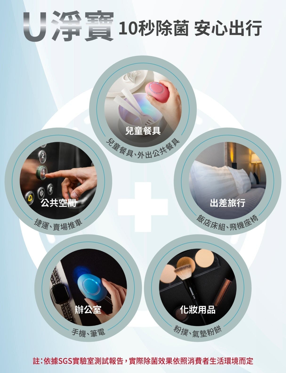・ 內容物:1 台 UVC 隨身除菌器、1 條 USB-TYPE C 充電線、1 個隨身收納袋、說明書與服務卡