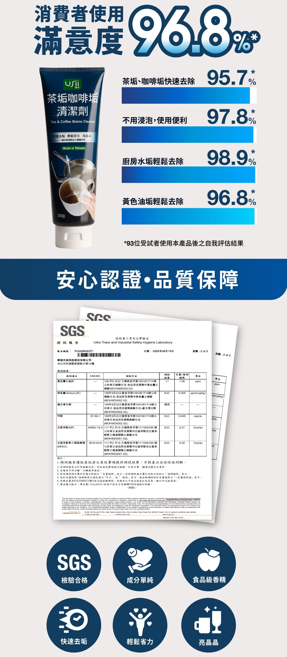 ・通過SGS檢驗,符合衛售食字第1091901714號、第1111900199號檢驗辦法,六大有害物質無檢出